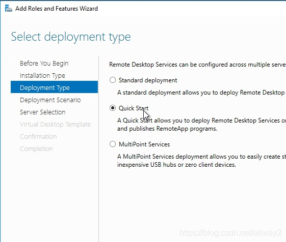 在“ 選擇 部署類型”頁面上,選擇“ 快速入門” ,然后單擊“下一步”。