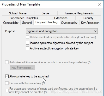 接下來,單擊“請求處理”選項卡,然后選中“ 允許導(dǎo)出私鑰”。