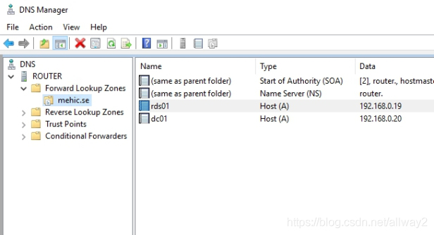 在創(chuàng)建新證書之前,我們需要配置DNS,以便外部用戶可以將RD網(wǎng)關(guān)的名稱解析為正確的IP地址。您將在外部DNS(托管dns或ISP上的DNS)上配置它,而我們對此沒有控制權(quán),但可以從Internet進行訪問。