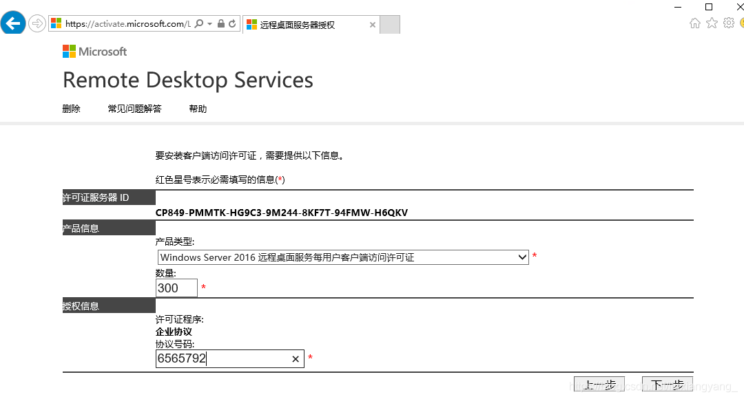 選擇每用戶訪問許可,協(xié)議號碼可以填寫6565792,4954438,6879321或者5296992,數(shù)量可以填寫任意:
