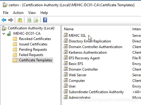 在現(xiàn)實生活中,您可以從公共CA(GoDaddy,VeriSign等)購買此證書。該證書需要包含您將用作RD Web訪問URL的FQDN(我的是rds01.mehic.se)。它必須為.pfx格式,并且您需要包含私鑰。就我而言,我將使用我的專用CA。(如果您不熟悉或沒有私有CA,請查看我的Mastering Windows Server 2016系列,以了解如何安裝證書頒發(fā)機構(gòu))