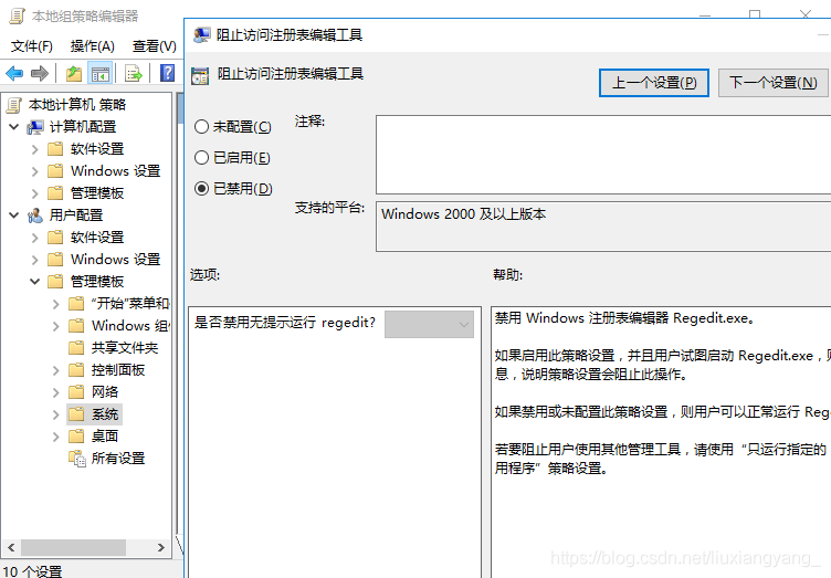 運行 gpedit.msc,在用戶配置 - 管理模板 - 系統(tǒng)中修改組織訪問注冊表編輯工具為已禁用