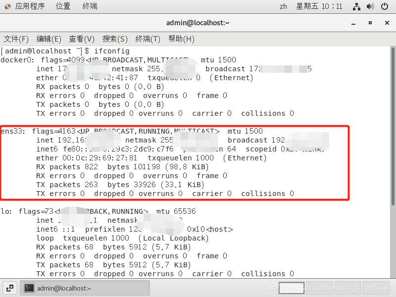 設(shè)置完成后在虛擬機(jī)查看IP信息,命令:ifconfig