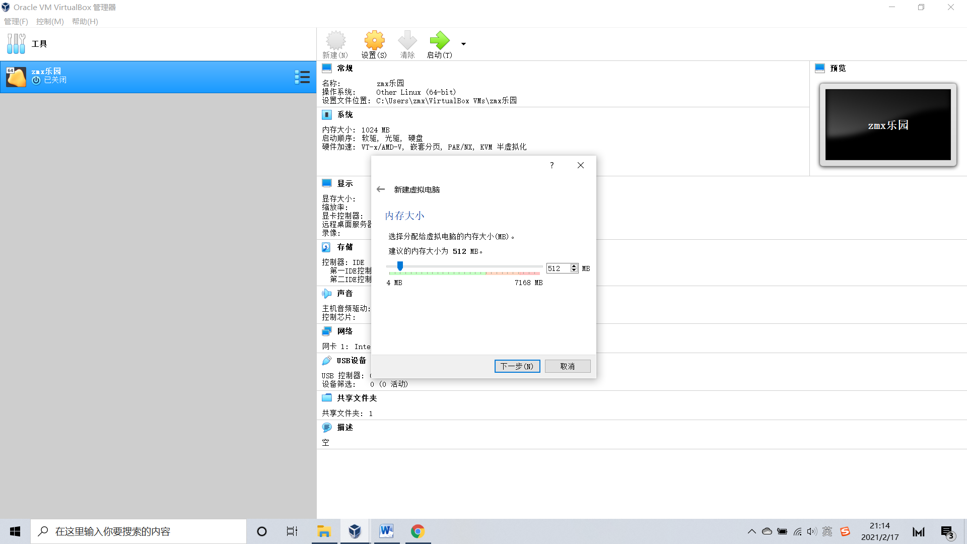 點(diǎn)擊下一步,為虛擬機(jī)分內(nèi)存,推薦1G~2G,我這里只是做示范,所以直接默認(rèn)了。