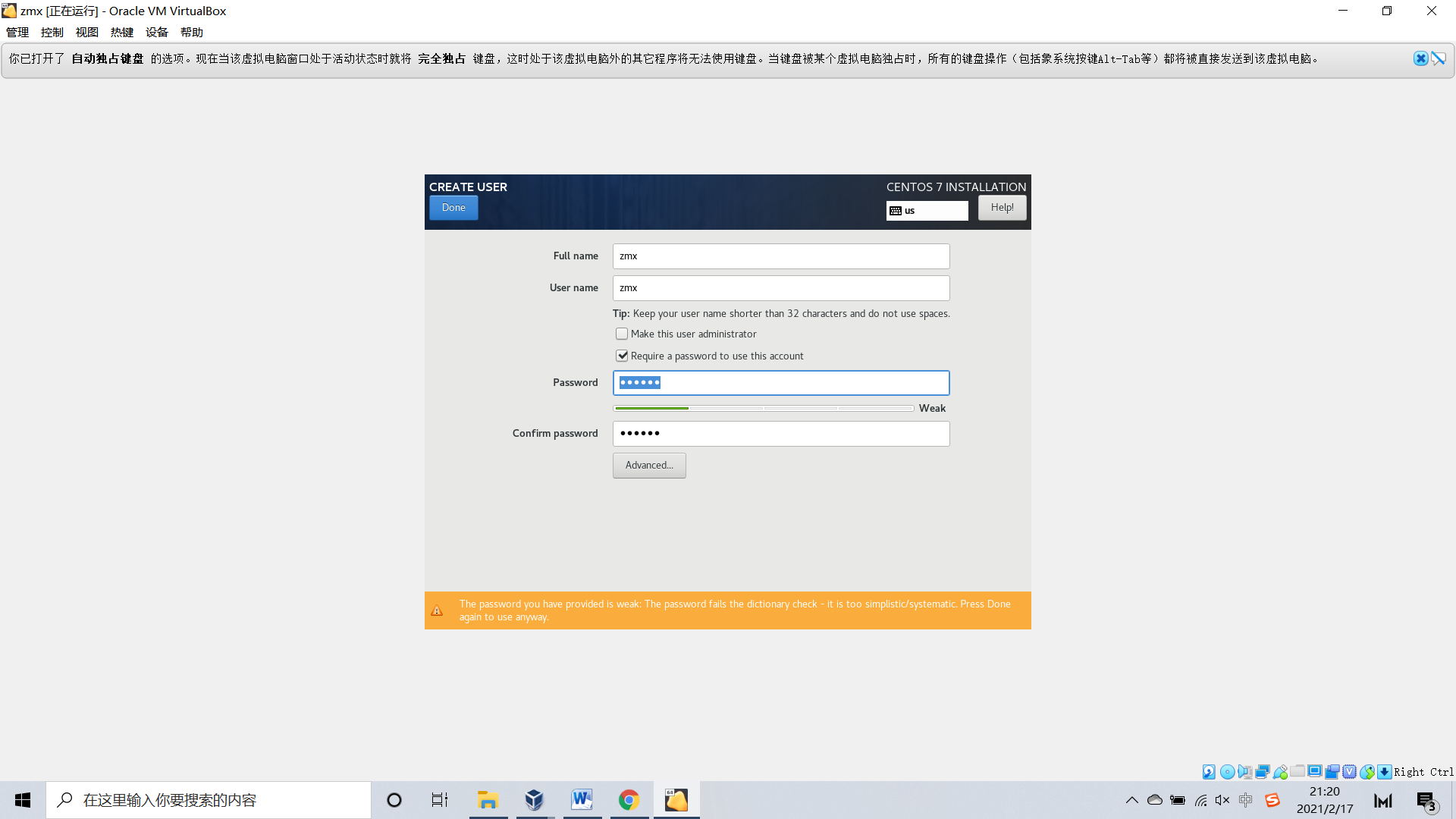 漫長的等待時(shí)間,我們來創(chuàng)建兩個(gè)賬號,一個(gè)root賬號,一個(gè)普通用戶。(切記要記住自己的root密碼,待會需要用)