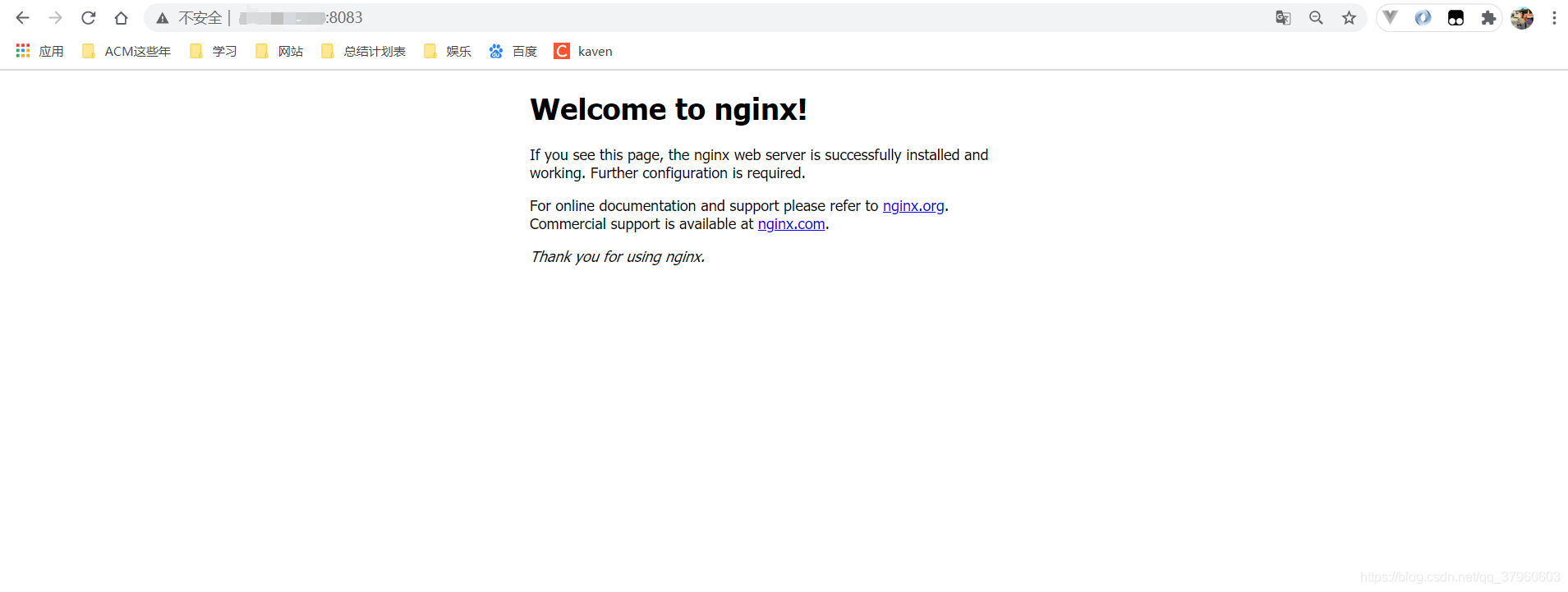 此時(shí)訪(fǎng)問(wèn)本地主機(jī)的8083端口即可訪(fǎng)問(wèn)容器內(nèi)nginx應(yīng)用提供的界面。