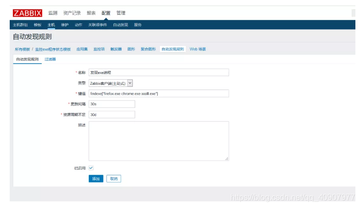 然后在剛才的check_exe_status模板中,創(chuàng)建自動(dòng)發(fā)現(xiàn)規(guī)則
