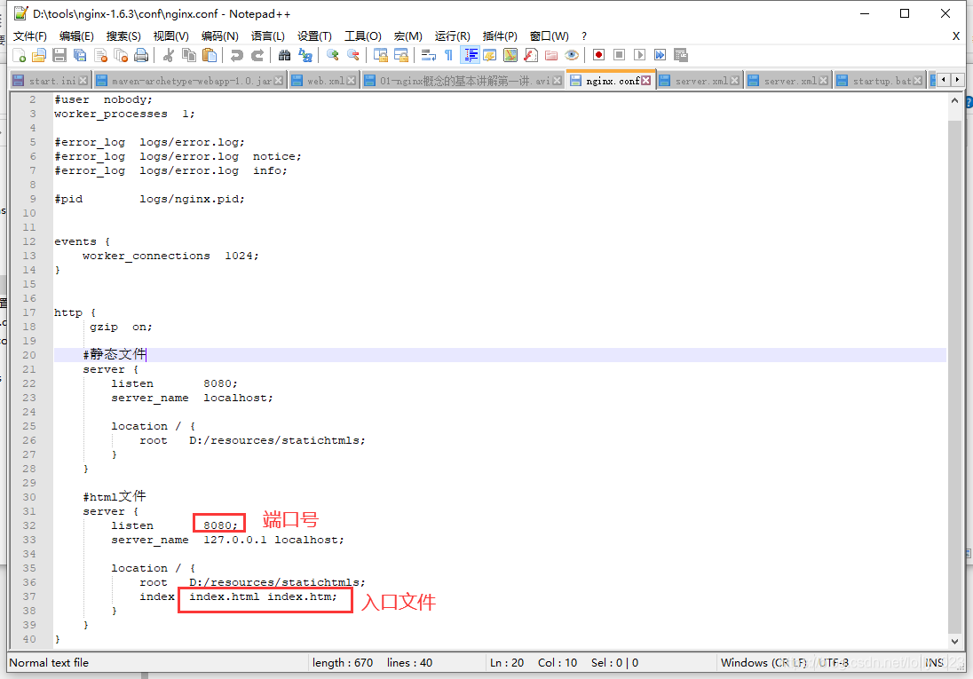 - 更改nginx的配置文件:nginx.conf