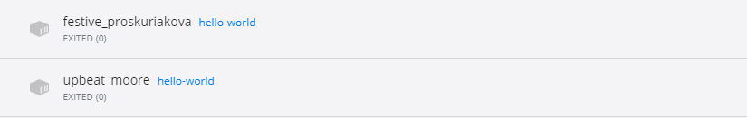 我們運行兩次 hello-world 后打開 docker desktop,可以發(fā)現(xiàn)每次運行的容器名稱貌似是隨機分配的