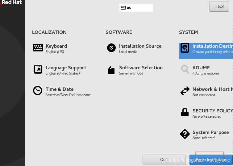 3、配置一些安裝信息,主要是配置系統(tǒng)安裝目的installation destination信息。