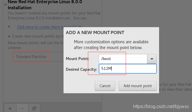5、選擇標(biāo)準(zhǔn)分區(qū),點(diǎn)+號(hào)創(chuàng)建/boot分區(qū),512M大小