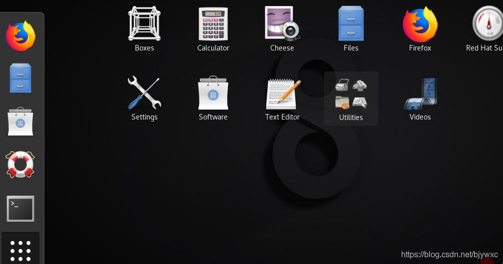 1、點(diǎn)擊左上角的活動(dòng)activities,左邊會(huì)彈出一些菜單,包括瀏覽器、終端、軟件等