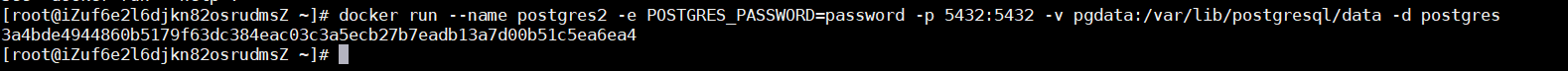 docker run --name postgres2 -e POSTGRES_PASSWORD=password -p