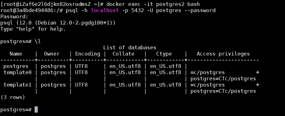 # 進(jìn)入postgresql,默認(rèn)的postgres用戶