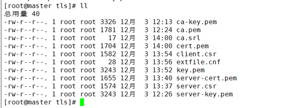 [root@master tls]# openssl req -subj "/CN=client" -new -key key.pem -out client.csr