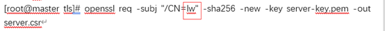 [root@master tls]# openssl req -subj "/CN=lw" -sha256 -new -key server-key.pem -out server.csr