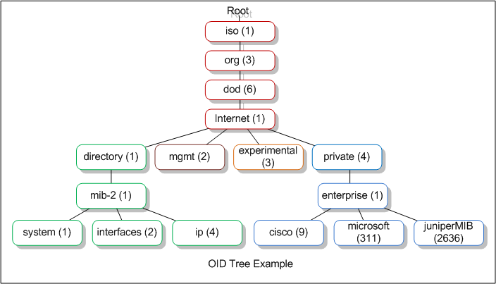 所謂(MIB)管理信息庫(kù),就是所有代理進(jìn)程包含的、并且能夠被管理進(jìn)程進(jìn)行查詢和設(shè)置的信息的集合。MIB是基于對(duì)象標(biāo)識(shí)樹(shù)的,對(duì)象標(biāo)識(shí)是一個(gè)整數(shù)序列,中間以"."分割,這些整數(shù)構(gòu)成一個(gè)樹(shù)型結(jié)構(gòu),類似于 DNS或Unix的文件系統(tǒng),MIB被劃分為若干個(gè)組,如system、 interfaces、 at(地址轉(zhuǎn)換)和ip組等。iso.org.dod.internet.private.enterprises( 1.3.6.1.4.1)這個(gè)標(biāo)識(shí),是給廠家自定義而預(yù)留的,比如華為的為1.3.6.1.4.1.2011,華三的為1.3.6.1.4.1.25506。