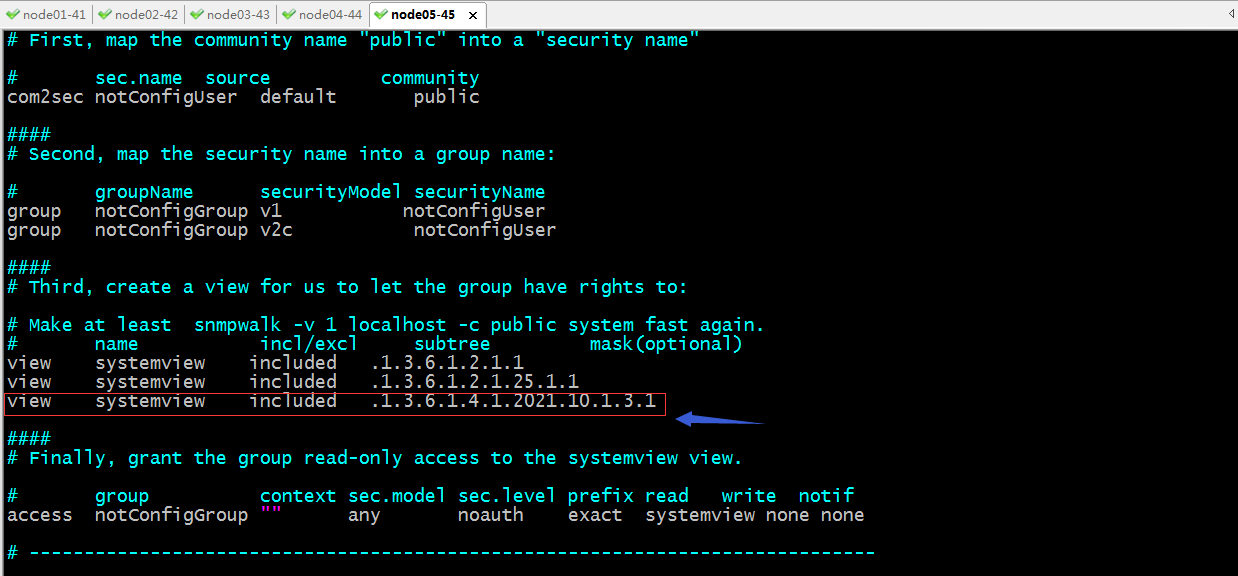 首先授權(quán)snmp能夠看到對(duì)應(yīng)子樹(shù)