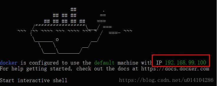 1.安裝了Window版本的Docker之后,我們啟動 Docker Quickstart Terminal ,我們會得到一個IP,我的為: