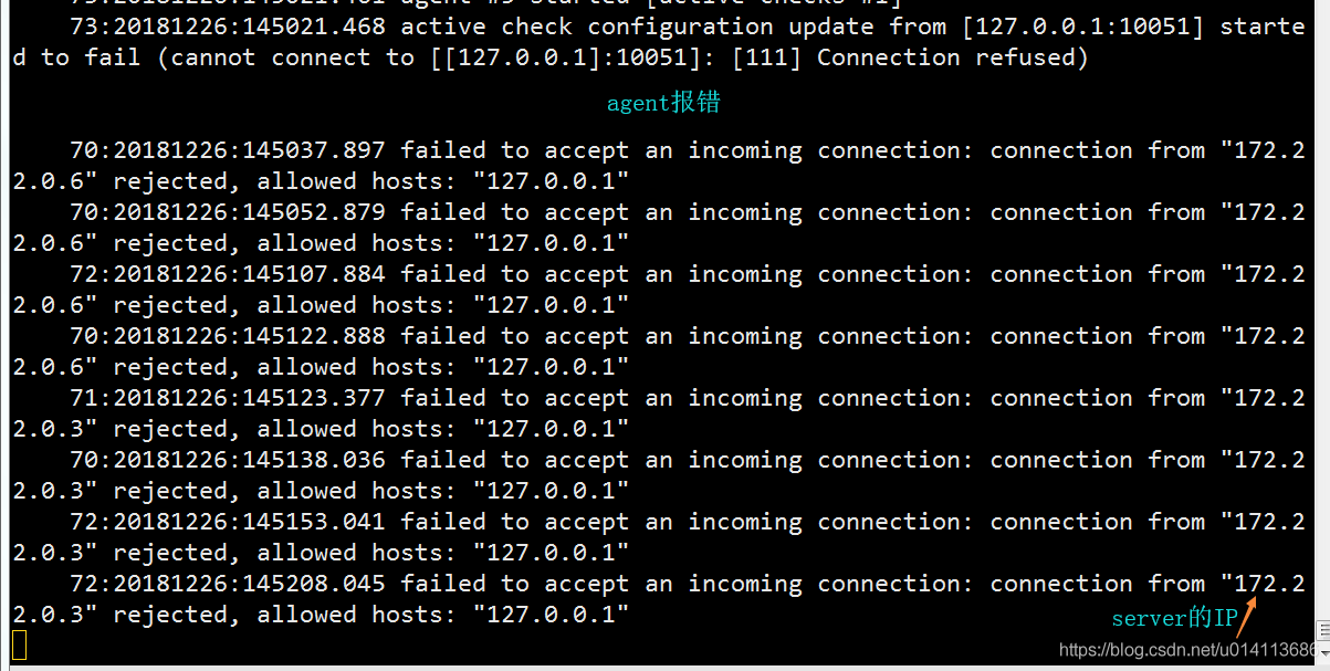 A、agent的ZBX_SERVER_HOST設(shè)置為127.0.0.1而不是zabbix_server的IP(172.22.0.3)