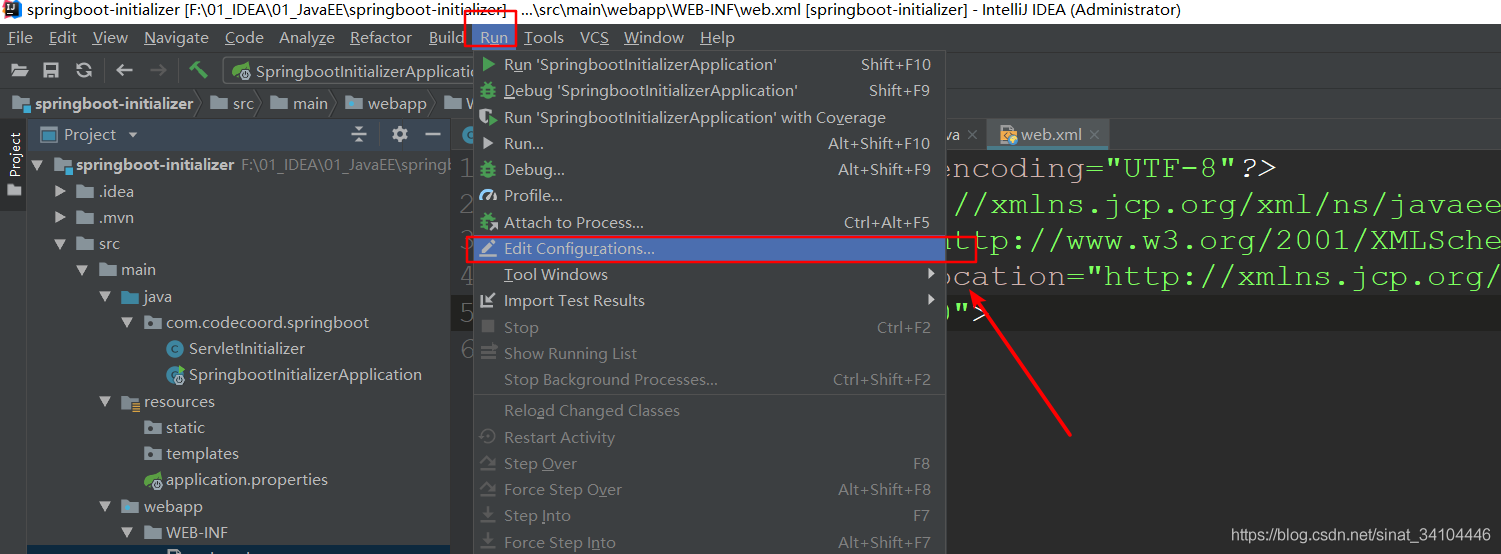 1.創(chuàng)建好web項(xiàng)目之后,現(xiàn)在需要配置服務(wù)器,以Tomcat為例