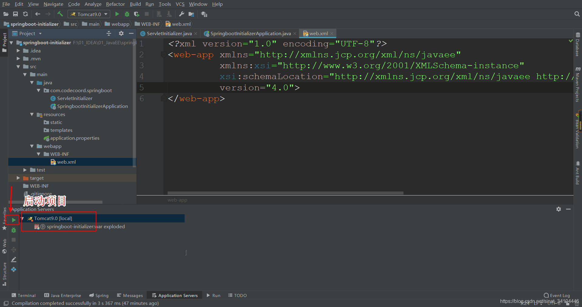 13.確定之后會(huì)返回主頁,自動(dòng)彈起服務(wù)器部署框,選擇運(yùn)行按鈕即可運(yùn)行服務(wù)器