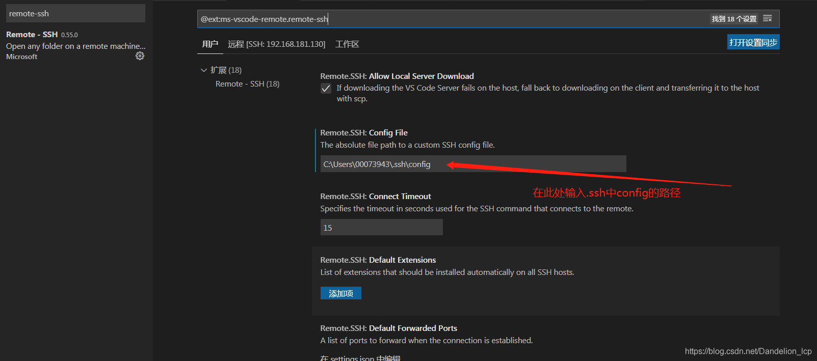 原來還需要在remote-ssh插件中添加config的路徑,不然前者無法識別。嗯。。。也對,不告訴人家地址,它也找不著。