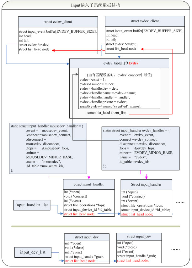 由上圖可知輸入子系統(tǒng)核心層提供的支持以及如何上報(bào)事件到input event drivers。