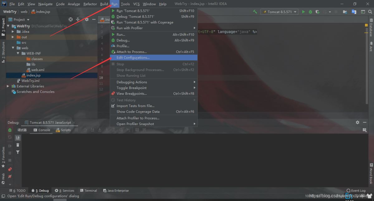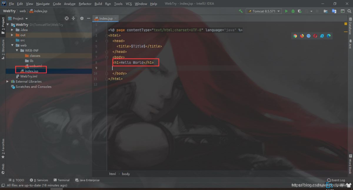在index.jsp中寫入HelloWorld,運(yùn)行項(xiàng)目