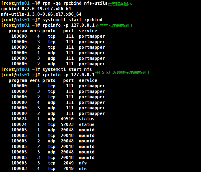 開啟服務并設置開機自啟:systemctl start rpcbind.service systemctl enable rpcbind.service