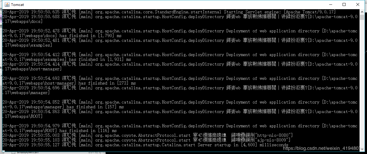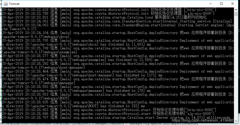 下載tomcat并解壓至某一目錄。我這里下載的是apache-tomcat-9.0.17-windows-x64,并解壓在我的D盤,D:\apache-tomcat-9.0.17