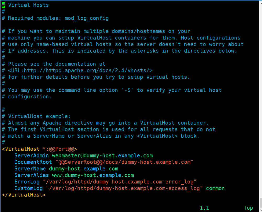cp /usr/share/doc/httpd-2.4.6/httpd-vhosts.conf /etc/httpd/conf.d/