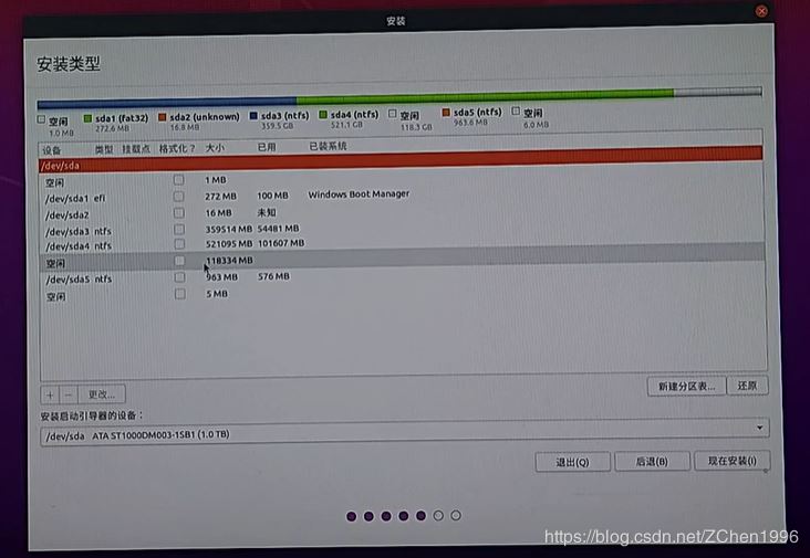 如果選擇其他選項(xiàng)安裝的(此圖是我網(wǎng)上找的),請(qǐng)選擇你分好的空閑分區(qū)即可(非手動(dòng)分區(qū)安裝)