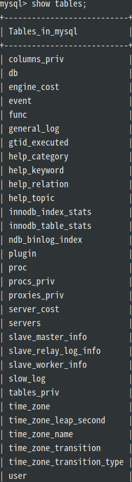 切換到系統(tǒng)數(shù)據(jù)庫(kù)“mysql”中: