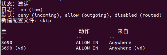 sudo ufw allow 3690 允許外部訪問3690端口(svn)