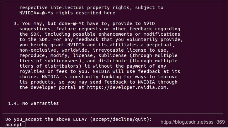 這里采用不帶驅(qū)動(dòng)的安裝方法,因?yàn)樽钚碌膎vidia顯卡驅(qū)動(dòng)已經(jīng)在前面安裝成功了;