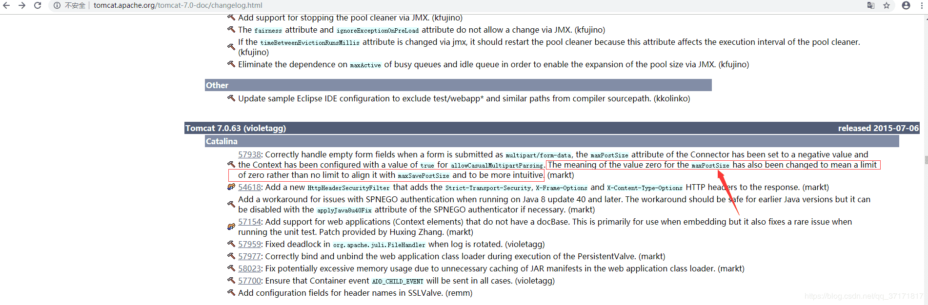 tomcat7.0.63之前 給maxPostSize設置小于等于0的值都可表示不限制