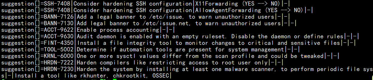 # grep -E "^warning|^suggestion" /var/log/lynis-report.dat