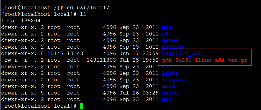 4.使用 rz命令上傳jdk1.8 linux 64位版本 解壓到 usr/local 目錄下
