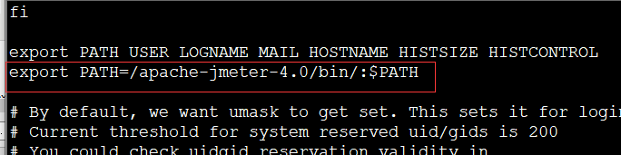 3.配置jmeter環(huán)境變量 vim /etc/profile 添加 export PATH=/apache-jmeter-4.0/bin/:$PATH 注意路徑
