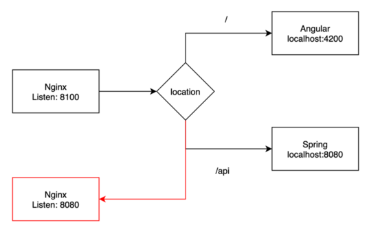 Nginx監(jiān)聽端口8100,前臺端口4200,后臺端口8080。