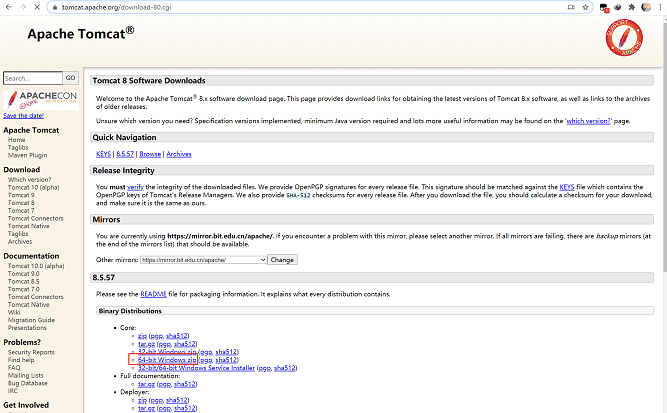 2.下載tomcat 地址“https://tomcat.apache.org/download-80.cgi”