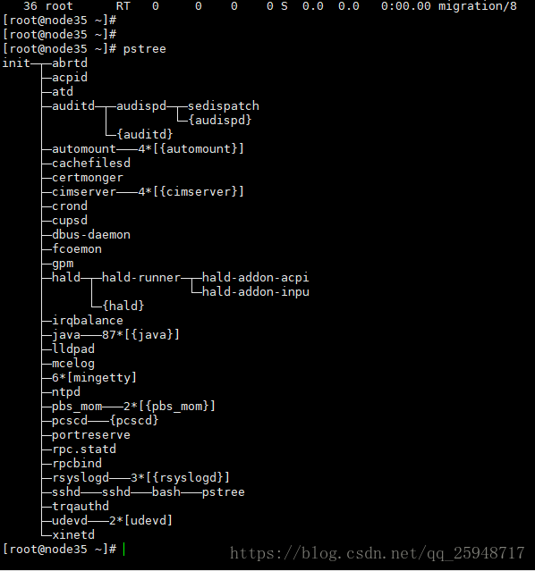 pstree以樹狀顯示正在運(yùn)行的進(jìn)程。樹的根節(jié)點(diǎn)為pid或init。如果指定了用戶名,進(jìn)程樹將以用戶所擁有的進(jìn)程作為根節(jié)點(diǎn)。