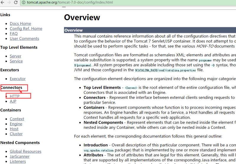 接著查看Connectors下的HTTP部分,這個(gè)和Tomcat下的conf中的server.xml配置文件的結(jié)構(gòu)有很大的相關(guān)性,只要你很熟悉server.xml配置,那么找到這個(gè)不是問(wèn)題