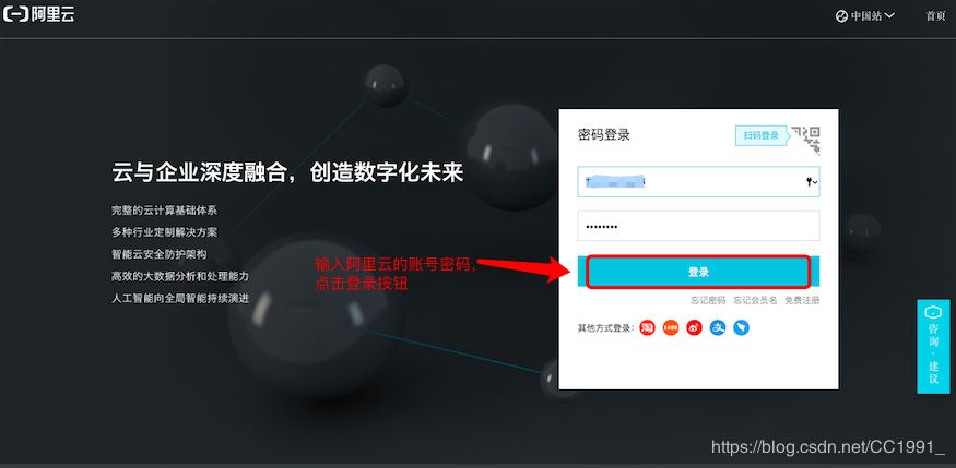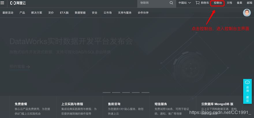 一、打開進(jìn)入阿里云官網(wǎng),然后登陸阿里云賬號(hào),進(jìn)入控制臺(tái)。