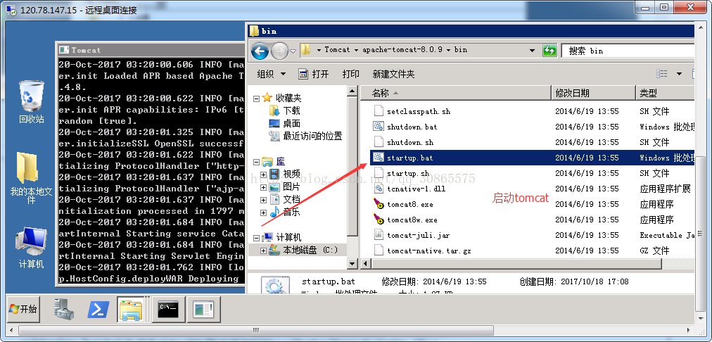 5. 配置好之后。把本地的項目的war包復(fù)制到 服務(wù)器下的Tomcat 目錄的webapps上。 之后啟動Tomcat。如圖所示。