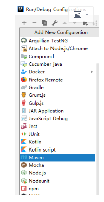 2.選擇綠色的“+”號(hào)往下拉找到“Maven”這個(gè)選項(xiàng)點(diǎn)進(jìn)去。