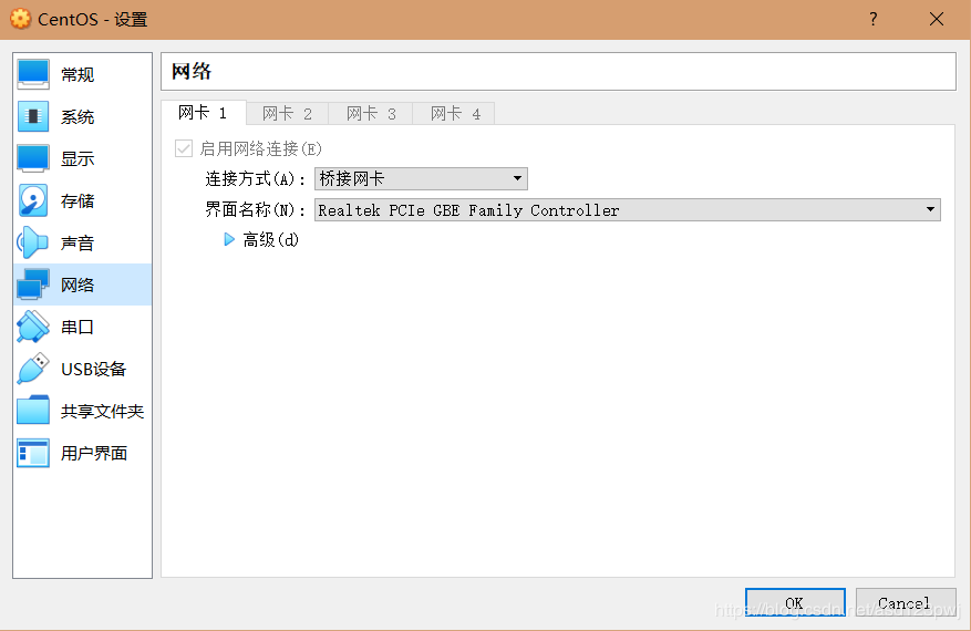 1.打開(kāi)VirtualBox,設(shè)置->網(wǎng)絡(luò),連接方式選擇橋接網(wǎng)卡。