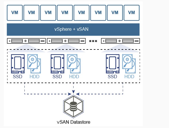 什么是vSAN可以理解為軟件定義的基于服務(wù)器集群搭建的分布式存儲(chǔ)。
