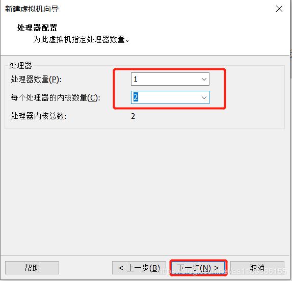 7.虛擬機處理器設置(根據(jù)自己的電腦配置即行設置)